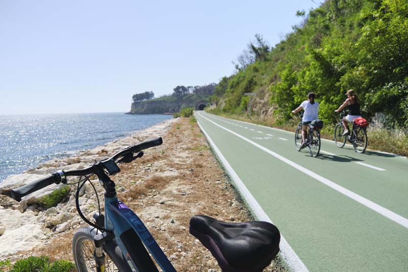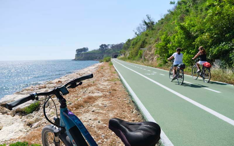 E proprio da qui siamo partiti con il nostro tour, pedalando su questo percorso, che seppure recente si sta affermando per la sua unicità e bellezza. A fianco del mare, lontano dalle strade percorse dalle automobili, ben segnalato, e frequentato sia da ciclisti amatoriali che da turisti che noleggiano la bici per vivere questa esperienza come parte integrante della loro visita in regione.